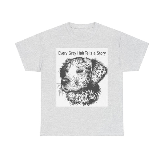Unisex Heavy Cotton Tee with Dog Illustration - Every Gray Hair Tells a Story, Pet Lover Gift, Dog Mom Tee, Animal Lover Apparel, [...]